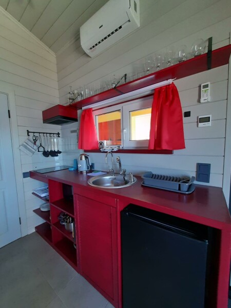 | Дом Уютны берег 4-местный | 31 кв.м. | 4 чел. | Мебель (диван, зеркало, кровать двуспальная, прикроватные тумбочки, стол, стулья, шкаф), Мини-кухня,... |