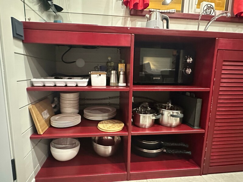 - Оборудование: духовой шкаф, кондиционер, микроволновая печь, набор посуды, плита электрическая, стиральная машина, сушилка для белья, телевизор ЖК, теплый пол, чайный набор посуды, электрочайник